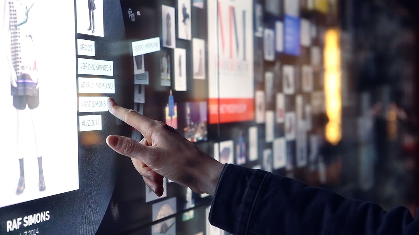 “From past experiences we learned to focus on quick and explorative interactions. Designing these kind of experiences involves a new way of designing. Instead of outputting a number of static design files, we worked closely with the museum on a number of interactive prototypes. These software prototypes were tested directly on the hardware creating an constant feedback loop for the people at MoMu.”
