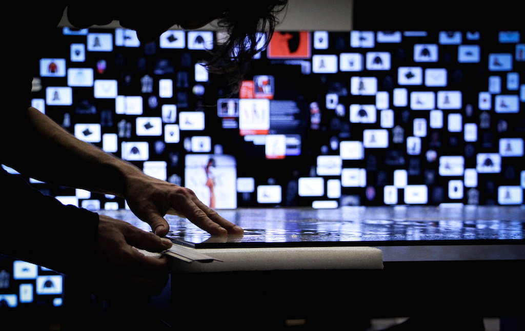 These days museums have large parts of their collection locked away in huge archives. The Fashion Museum of Antwerp (MoMu) transforms this problem in one of their strengths by digitally unlocking their hidden treasures to the public. The interactive wall was initiated by Studio Dos Santos. Lab101 set up a team to work on the concept, creative and technical challenges. To reach a large audience the wall was installed outside the museum which makes it accessible during closing hours. See all credits.