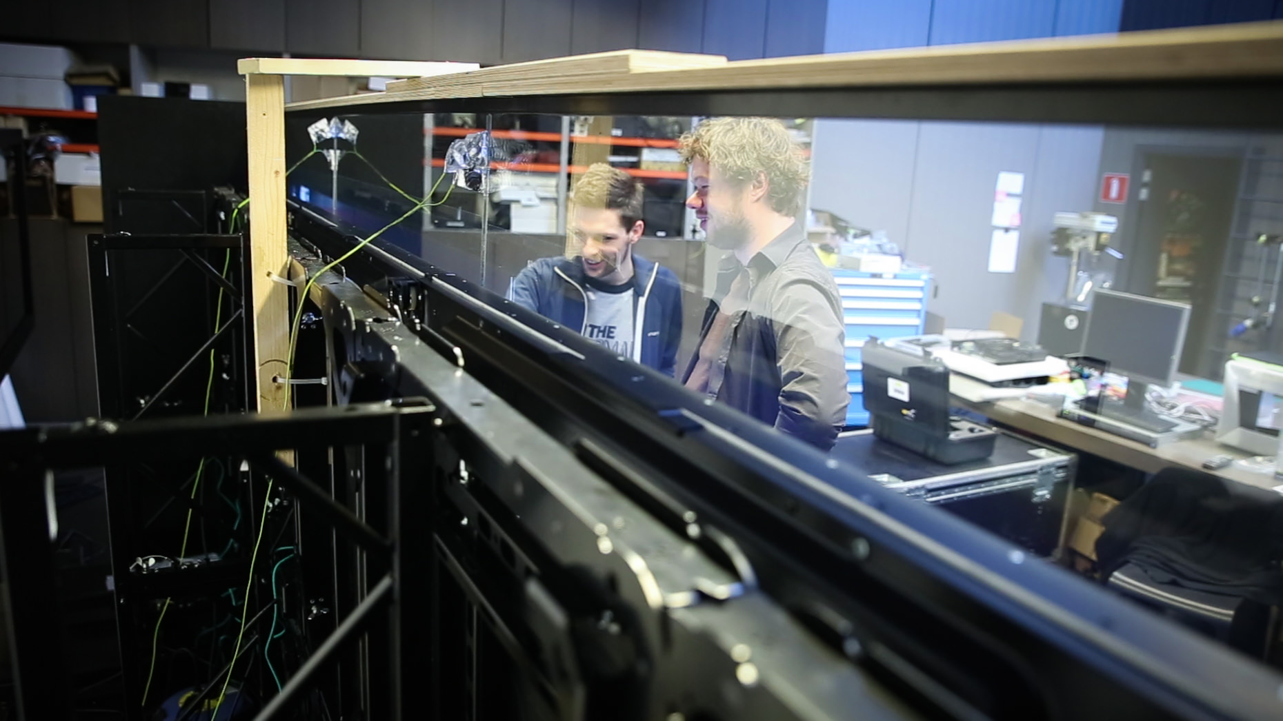 “As it’s a semi-outdoor setup we couldn’t rely on popular optical touch technology but had to experiment with capacitive touch. Multiple capacitive foils or very sensitive for interference from their neighbour foils and other hardware. Therefore we put a lot of effort and research in minimizing the noise on the different panels. With success we eliminated more than 90% of the initial noise.”