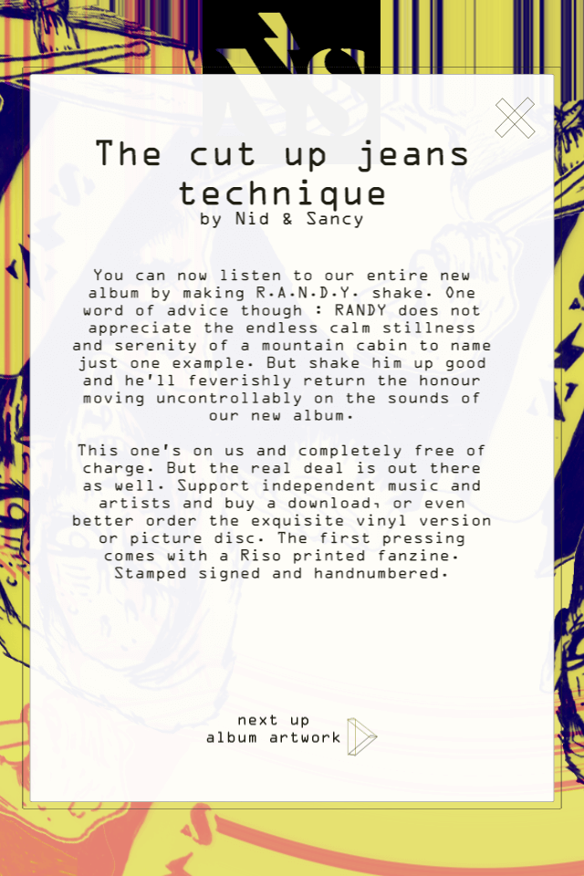Make R.A.N.D.Y. dance and listen to the upcoming Nid & Sancy album for free! As long as you keep R.A.N.D.Y. happy he will present you the whole album for free! All animations are interactive and real-time making use of OpenGL, GLSL and some Cinder libs.